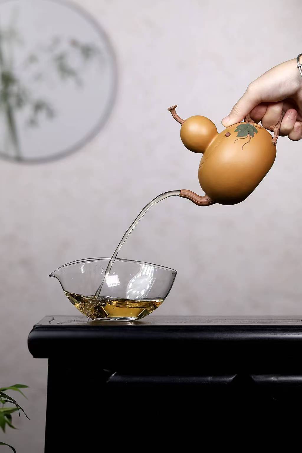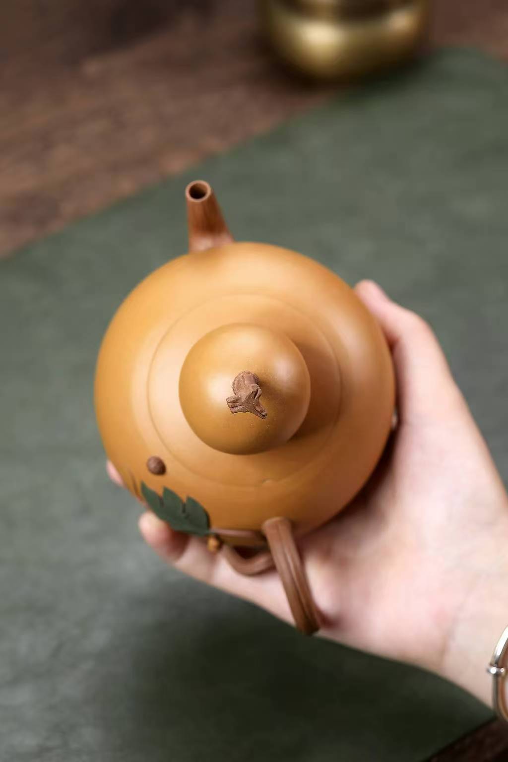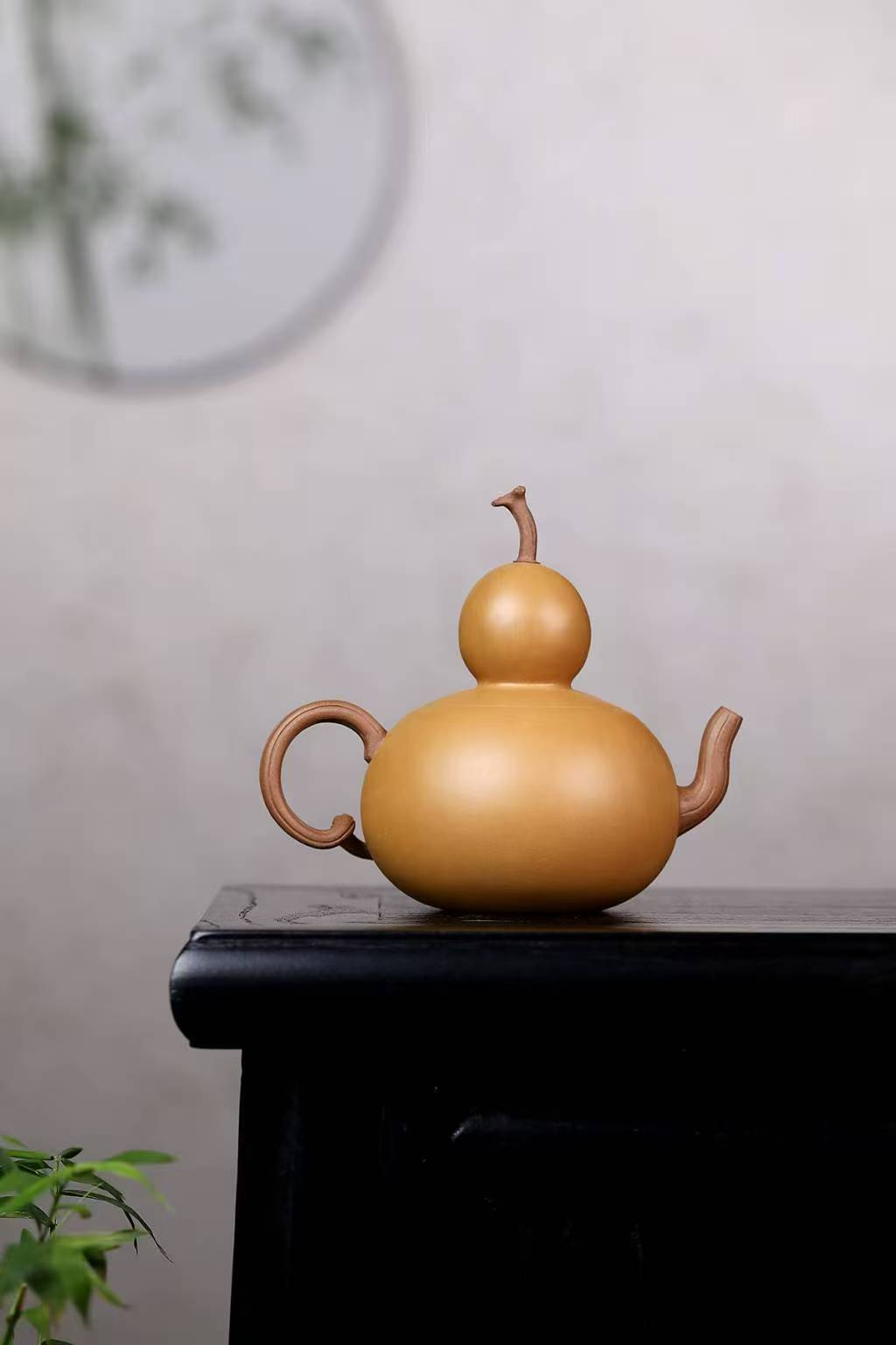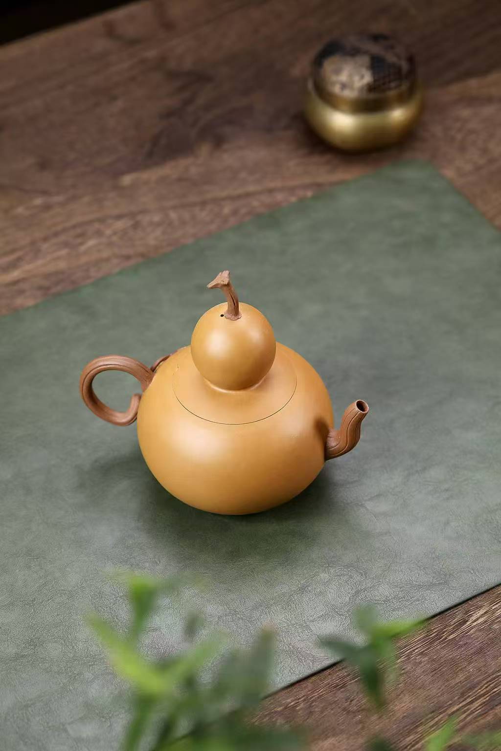 The inclusion of a gourd in the teapot symbolizes harmony and happiness. The homophony of "fu" (meaning "fortune") and "fortune" (meaning "luck") makes it a symbol of wealth and prosperity. Giving such a teapot as a gift conveys a heartfelt blessing without the need for excessive words.