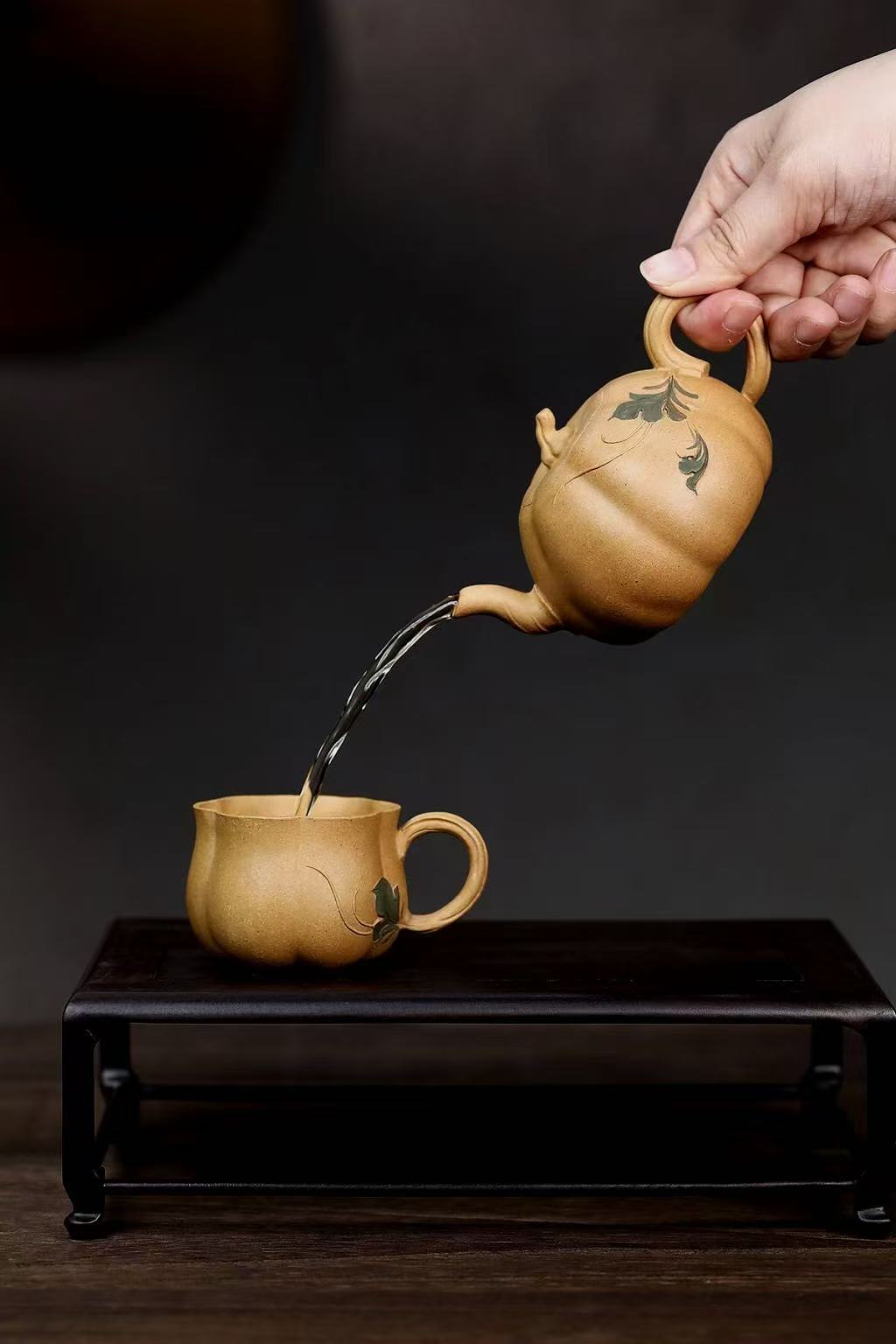 A pastoral charm, this complete bionic set features vine-adorned pots, a knob resembling a melon stem, a melon-shaped body, and vine-shaped side handles. The overall design is seamless and natural, with clear, smooth shapes and textures, creating a lifelike effect.