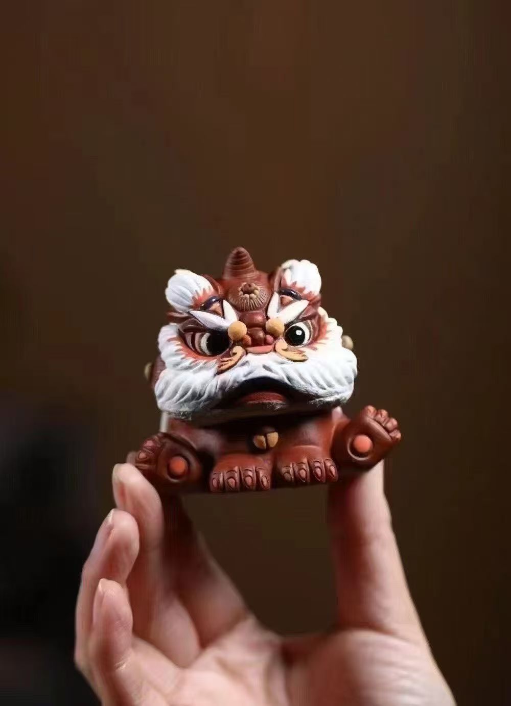 In the long history of Chinese culture, lions have appeared in various shapes and forms, with pairs of lions being the most common. The teacher used this theme to create this festive piece.